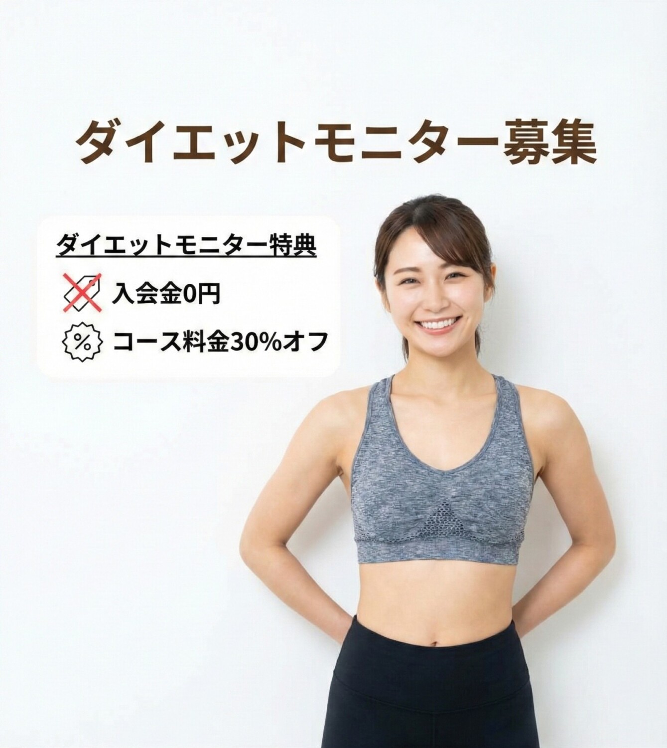 これらの条件を満たしている方は、お得な料金(入会金0円、コース料金30%OFF)でダイエットモニター参加可能です!