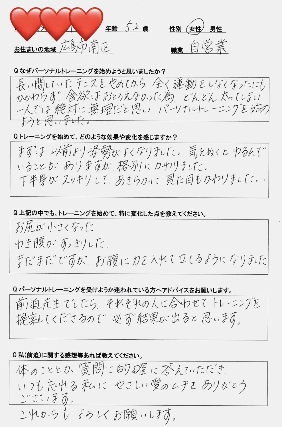広島市で「姿勢改善」「腸活」「ダイエット」に特化した女性向けパーソナルトレーニングを提供しています。